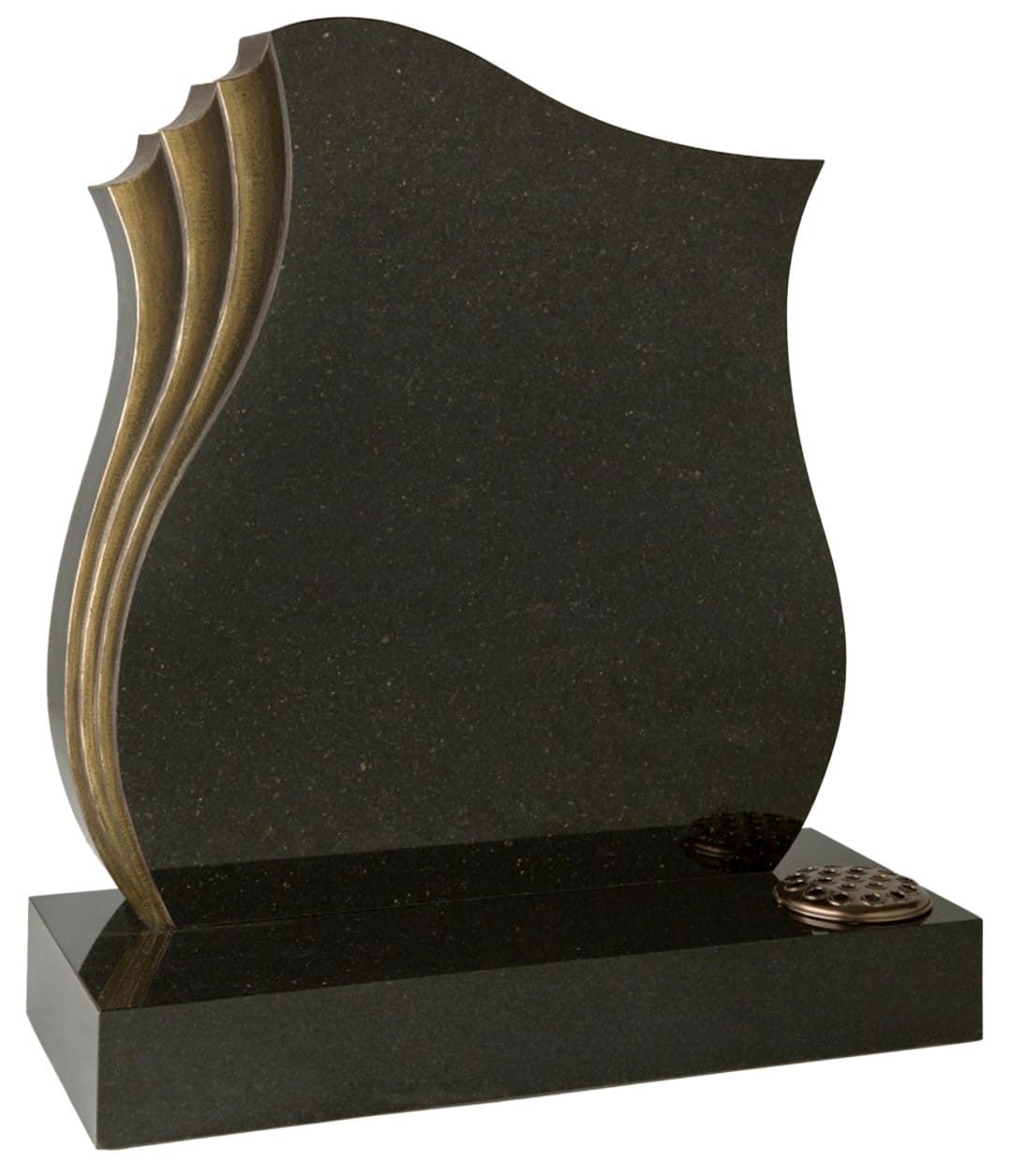 A modern cemetery memorial featuring hand-tooled rebates flowing down the left edge that can be highlighted in various colours. This contemporary design offers a unique and dignified way to honour your loved one’s memory.