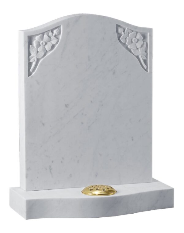 The WG192 headstone features a classic ogee top with beautifully carved wild roses on each shoulder. Crafted from premium marble, this elegant memorial offers timeless dignity and serves as a fitting tribute to your loved one.