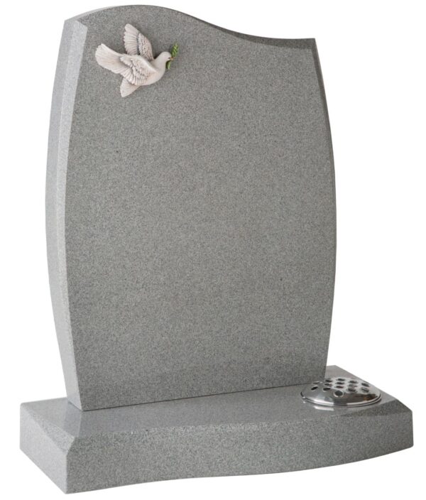 This elegant Abbey Grey memorial features a delicate painted resin ornament, harmoniously balancing artistry with reverence. The WG2 creates a dignified tribute to honour cherished memories and preserve the enduring connection to your loved one.