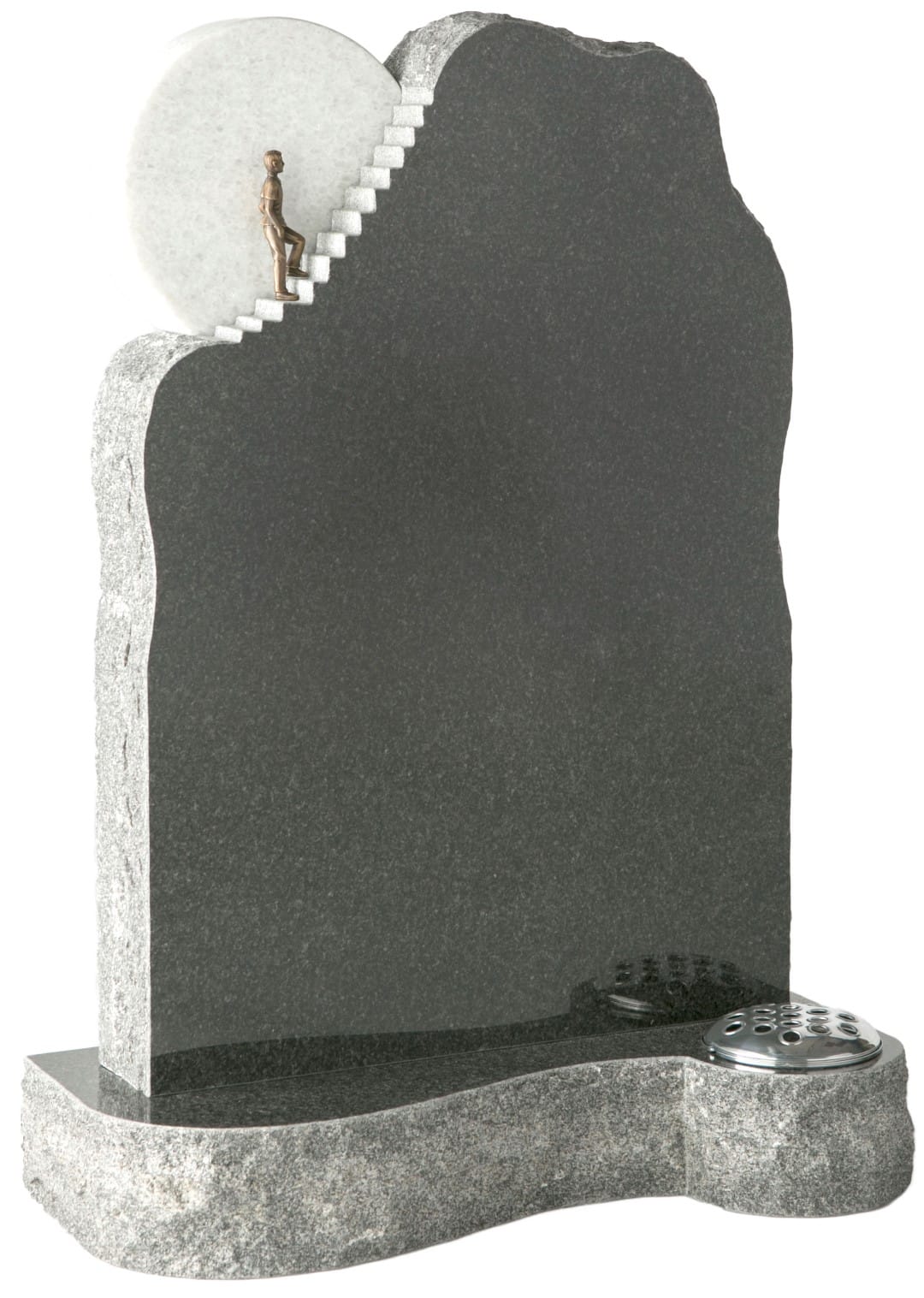 The WG215 Individual Monument features a poignant bronze figure symbolising a soul’s journey to Heaven, complemented by a striking marble moon. This thoughtful memorial offers a dignified tribute to your loved one. Request a quote for this customisable monument.