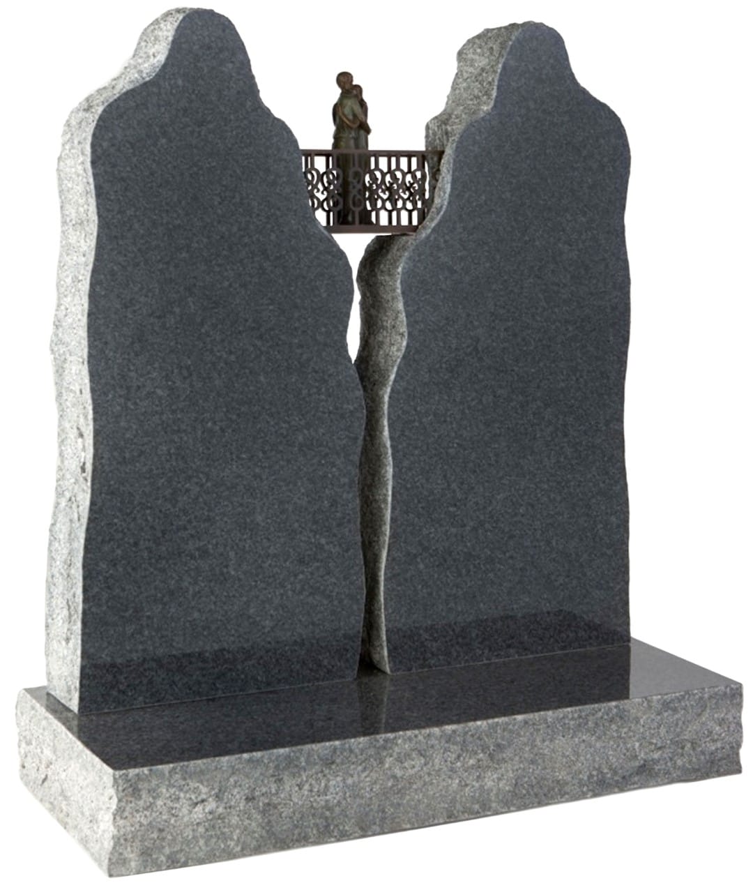 The WG216 Individual Monument presents a profoundly moving memorial that celebrates the enduring connection between loved ones. The distinctive "Crossing" design portrays a couple in a tender embrace upon a bridge that spans between two realms, symbolising how love transcends even the boundary between life and death.