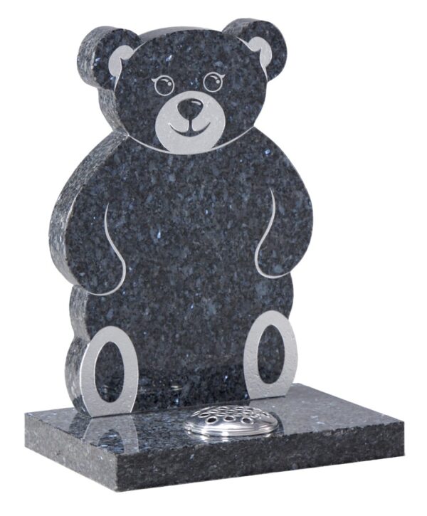 The teddy bear's features are elegantly created through sandblasting, adding texture and personality to this touching memorial. The craftsmanship ensures that every detail of this childhood companion is lovingly preserved.