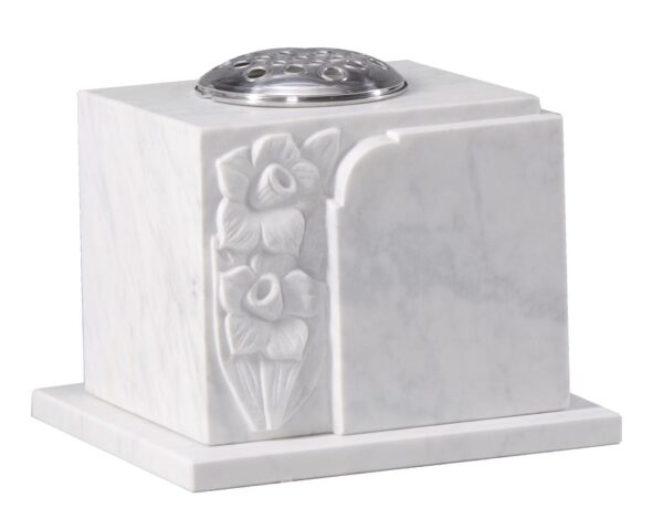 The beautifully carved daffodils that adorn both the vase and base represent renewal, hope, and the eternal cycle of life—offering comfort during moments of reflection and remembrance.