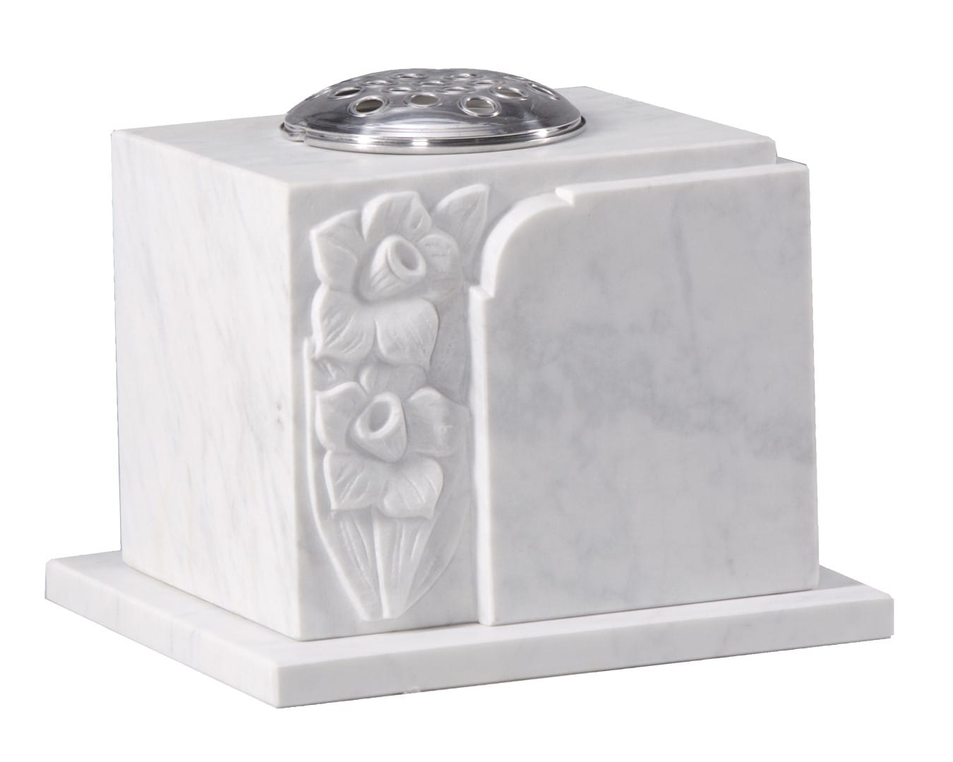 The WG279 memorial vase, meticulously crafted from fine marble, offers a dignified way to commemorate your loved one. This elegant design features a tasteful vase and base with delicate daffodil carvings symbolising renewal and rebirth.