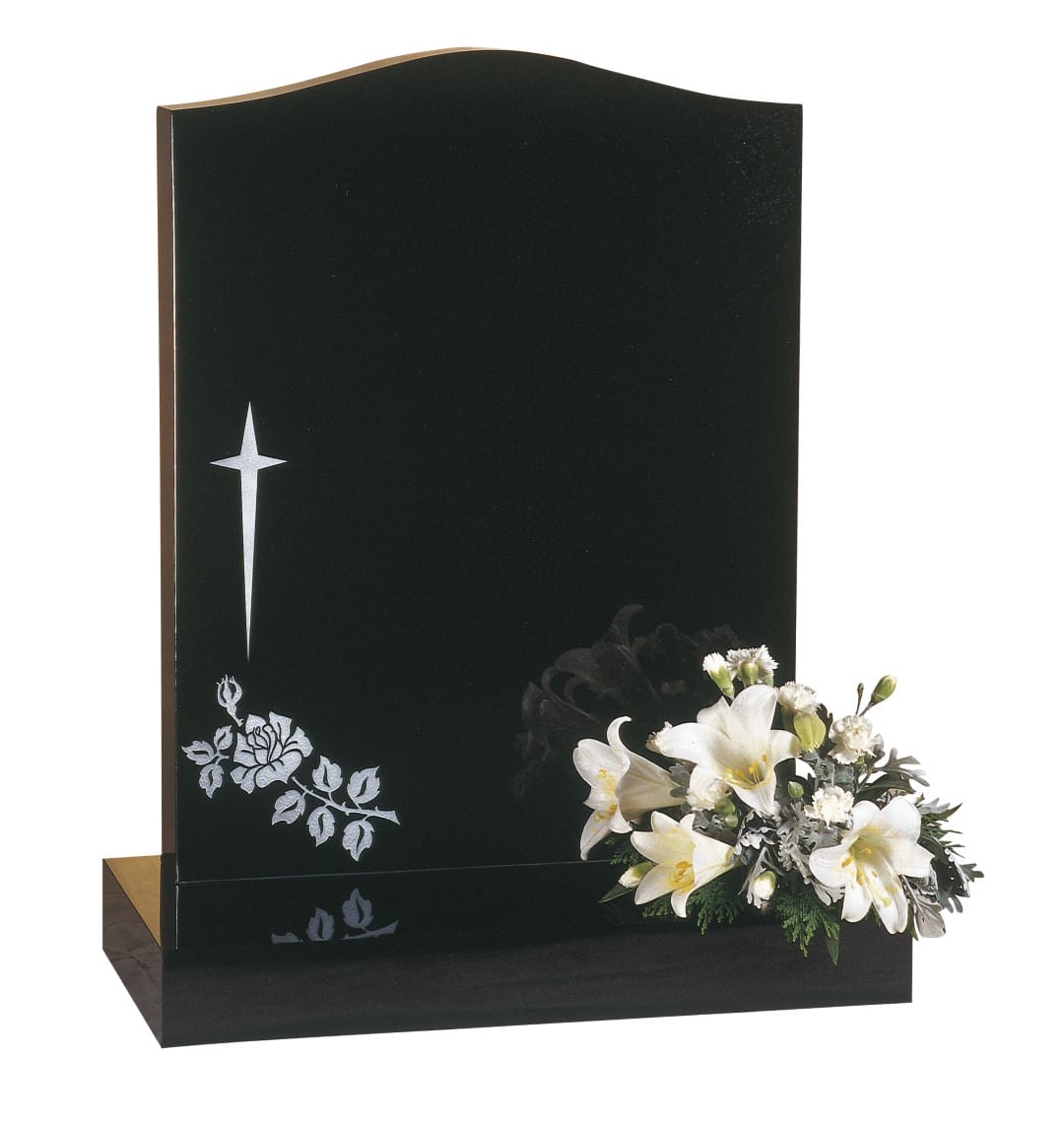 The WG31 Cemetery Memorial features a beautifully sandblasted star, cross, and rose design, creating a dignified tribute to your loved one. This elegant memorial symbolises faith, love and remembrance with its timeless design.