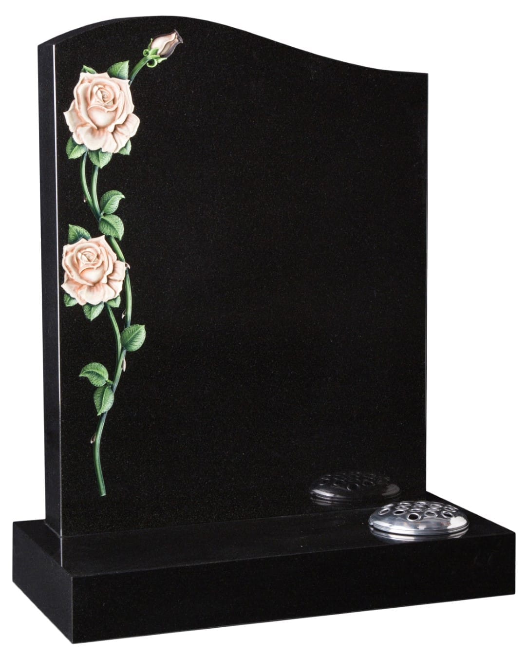 The WG47 Cemetery Memorial combines traditional elegance with expert craftsmanship to create a lasting tribute that honours cherished memories. This memorial features a half-ogee headstone adorned with a beautifully detailed CNC-carved and painted rose design, symbolising love, respect, and remembrance.